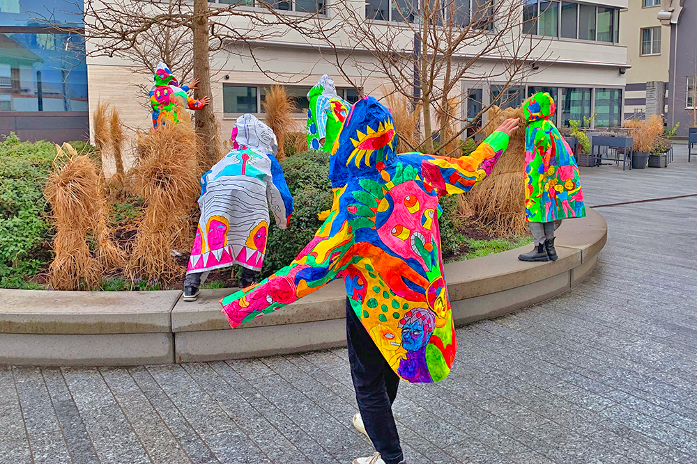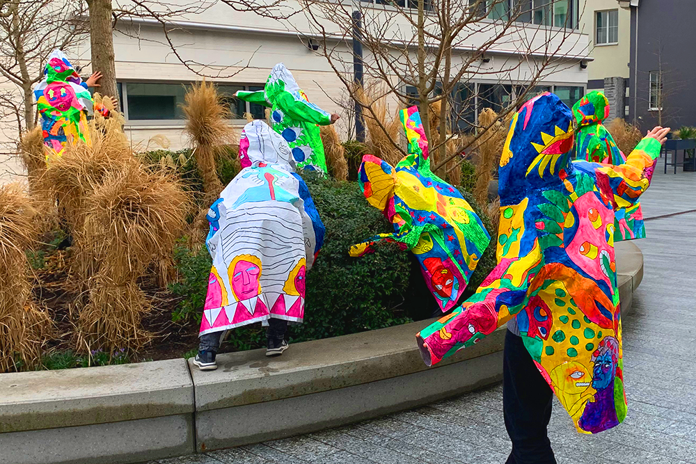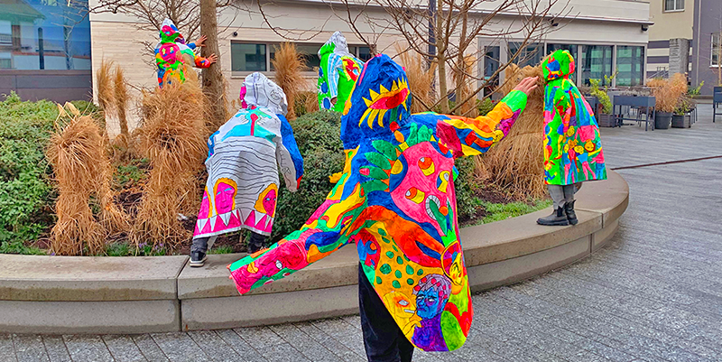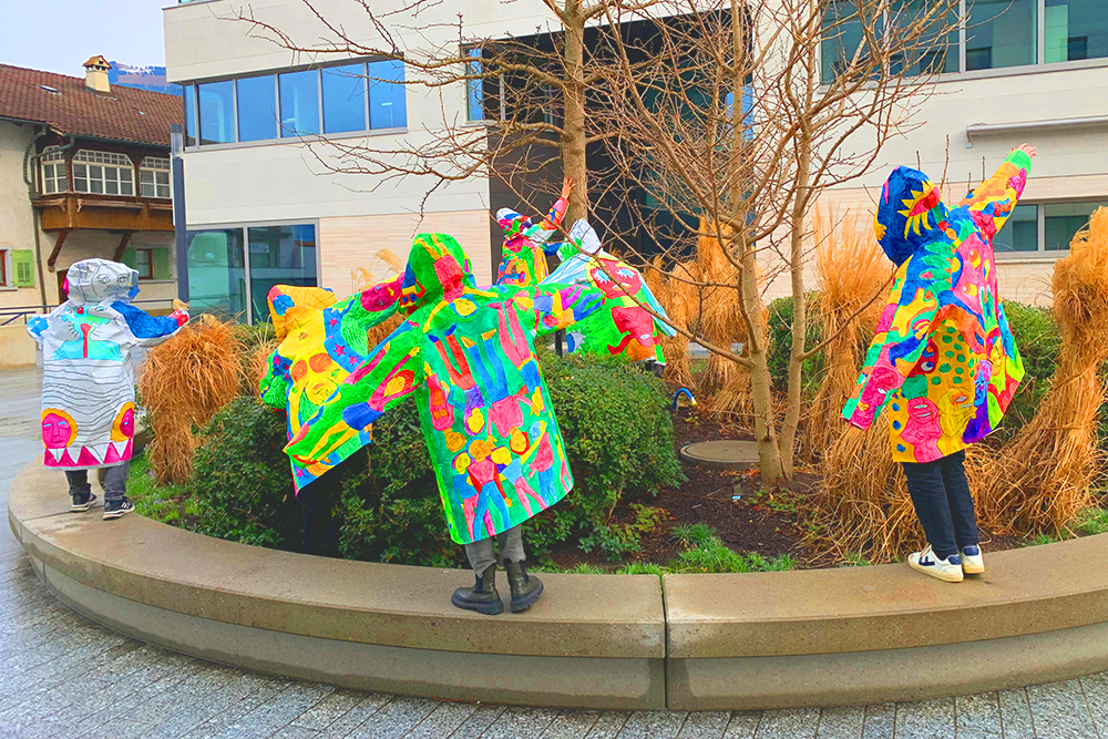 Inspiriert von den Paradiesvögeln hat Ursula Wolf eine künstlerische Performance entwickelt: Die farbintensiven Kostüme hat die Künstlerin realisiert, die Choreografie stammt von Tamara Kaufmann und die Musik von Anna Lena Lorenz.