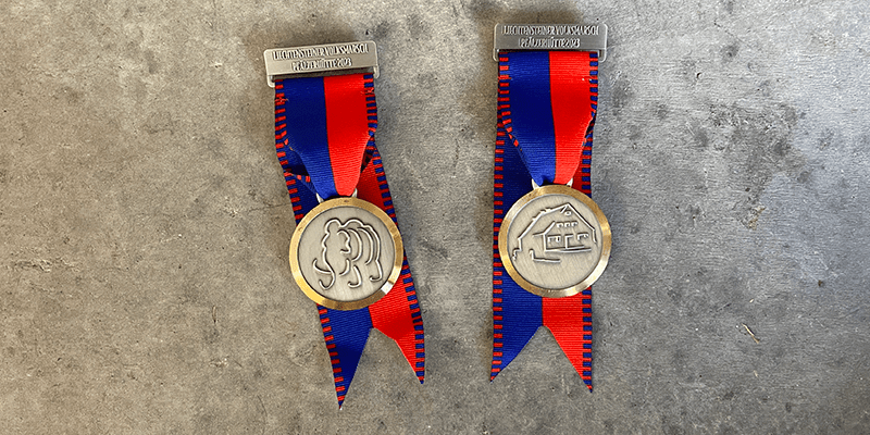 Die Medaille enthält auf der Vorderseite «s’Mammut» und auf der Rückseite ein Bild der Pfälzerhütte und ist von den Liechtensteiner Volksmarsch-Medaillen der 1970er-Jahre inspiriert. Zeichnungen: Liam Wohlwend